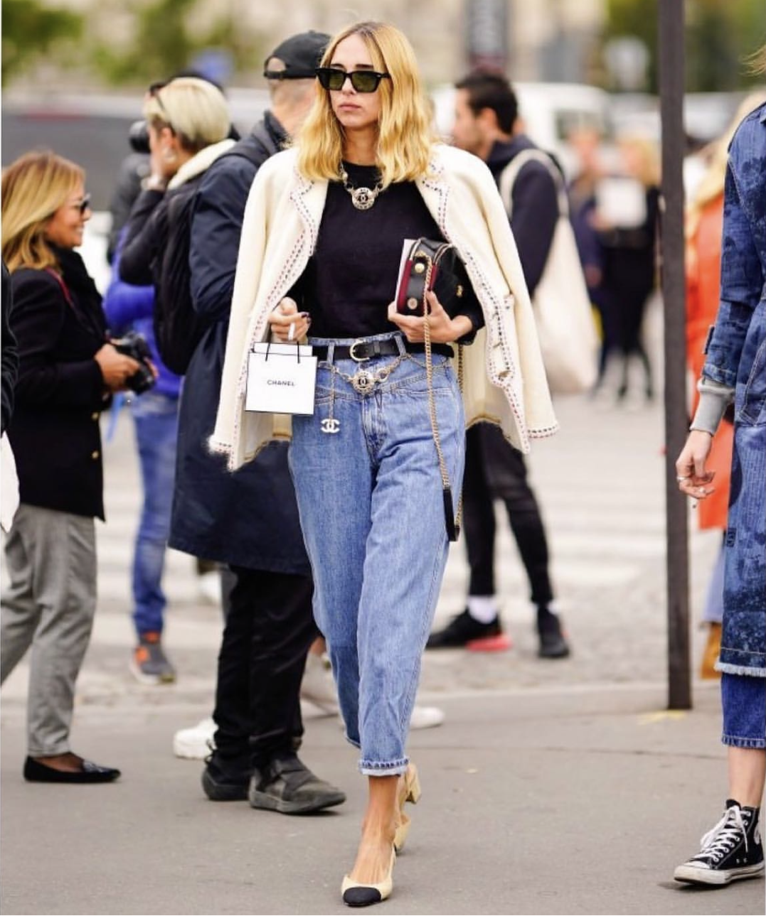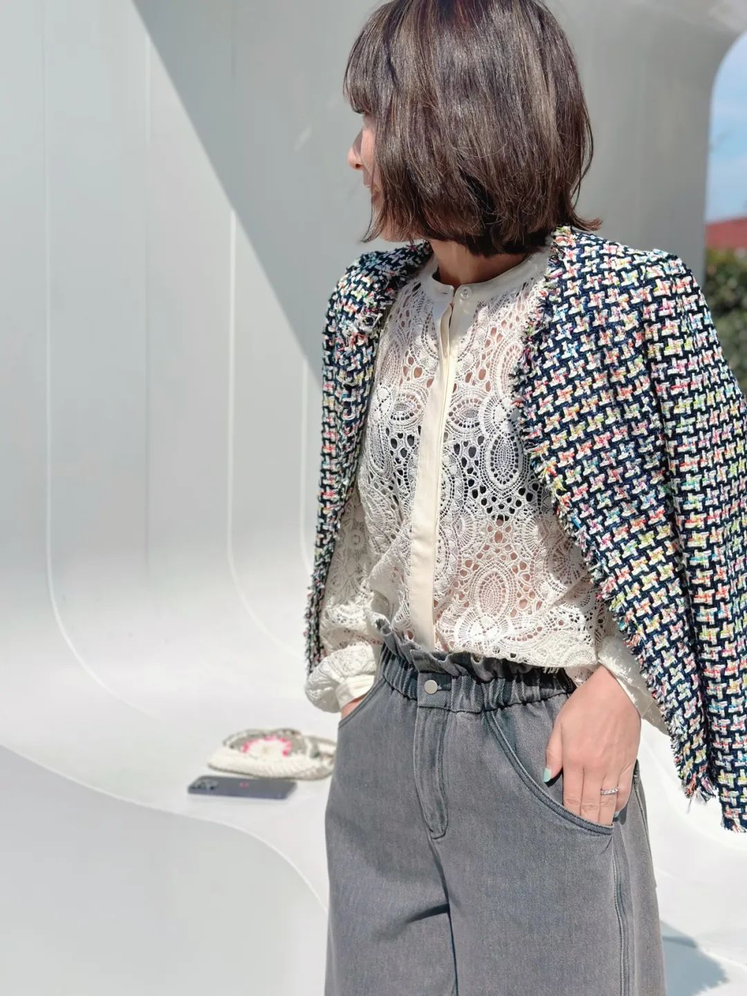 牛仔裤与小香风外套的搭配也是非常有魅力的,小香风外套本身就是一种高级感和优雅感的象征,与牛仔裤相搭,可以平衡出一种时尚而不失个性的风格。