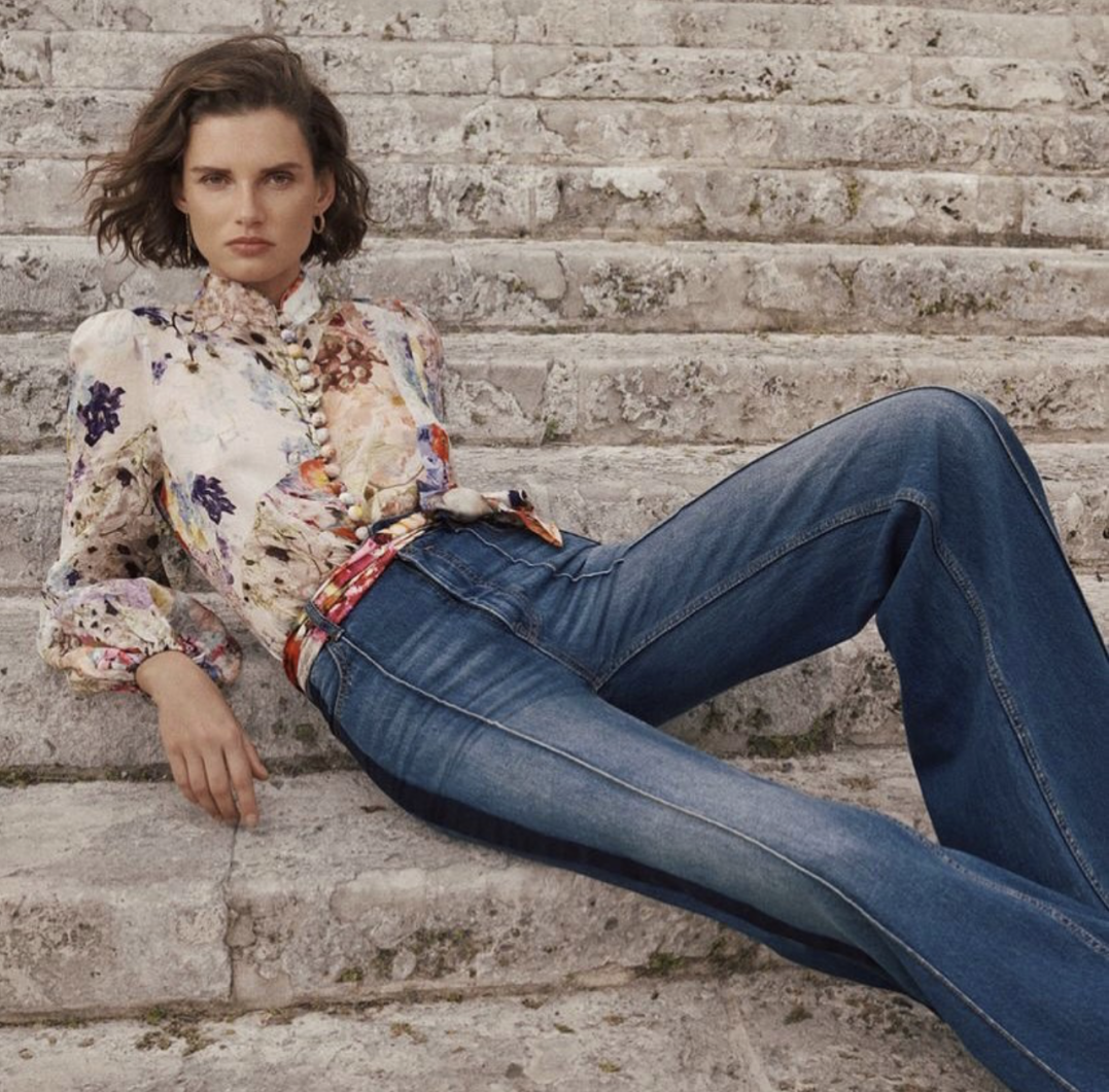 牛仔配搭亮色或者带花型的上衣,特别有复古的韵味,还可以通过撞色来增加时尚感。