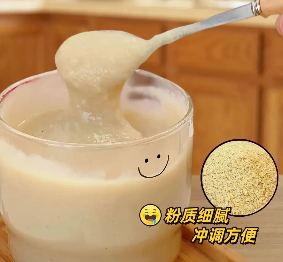 早上起来,冲一碗热气腾腾的猴菇人参米昔,取两勺,约30g的粉,加入温水轻轻搅拌成糊状,全程只需2分钟,一碗美味可口的人参猴头菇米糊就做好了!