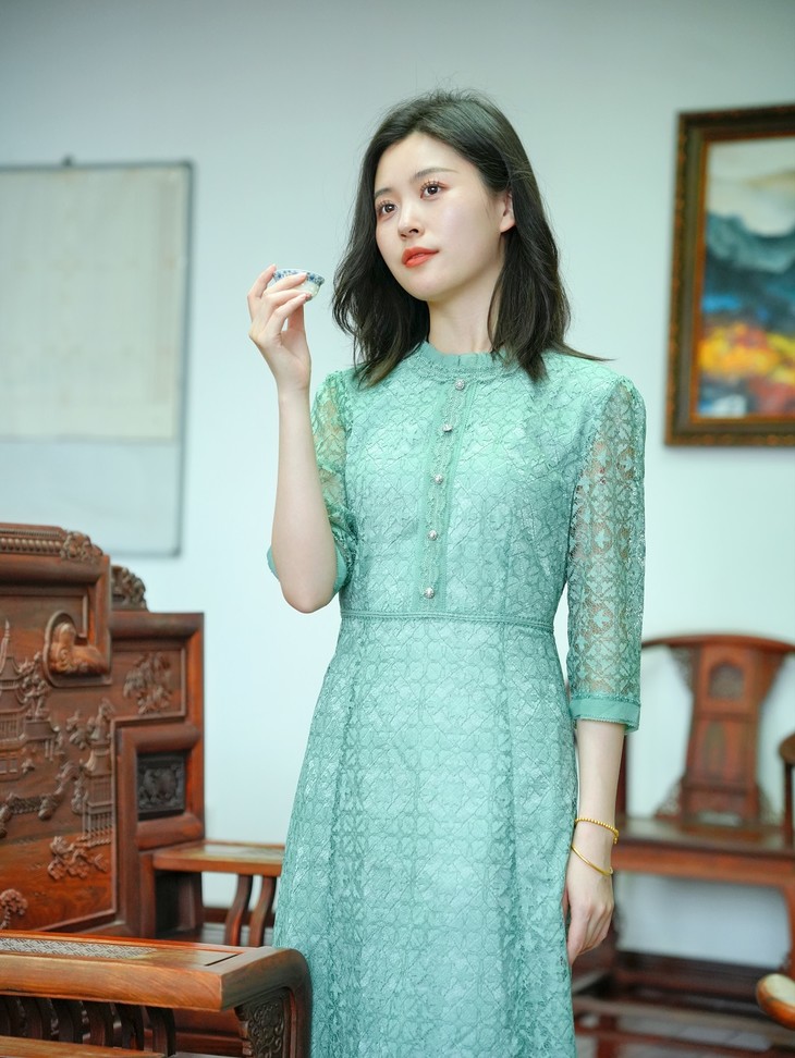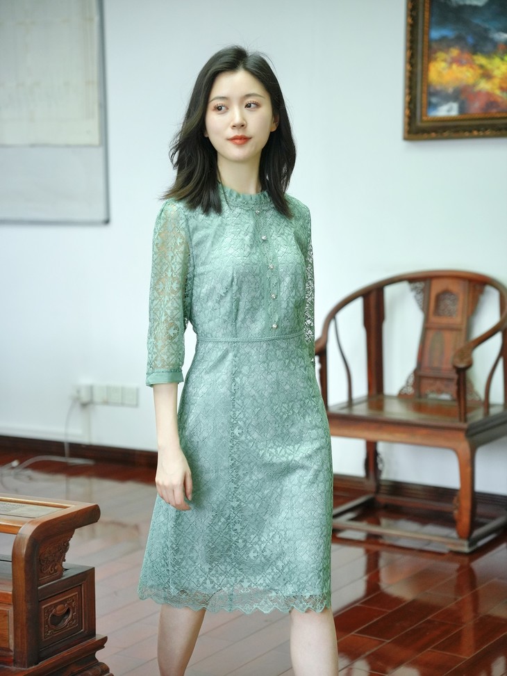 精致蕾丝高腰设计轻礼服连衣裙