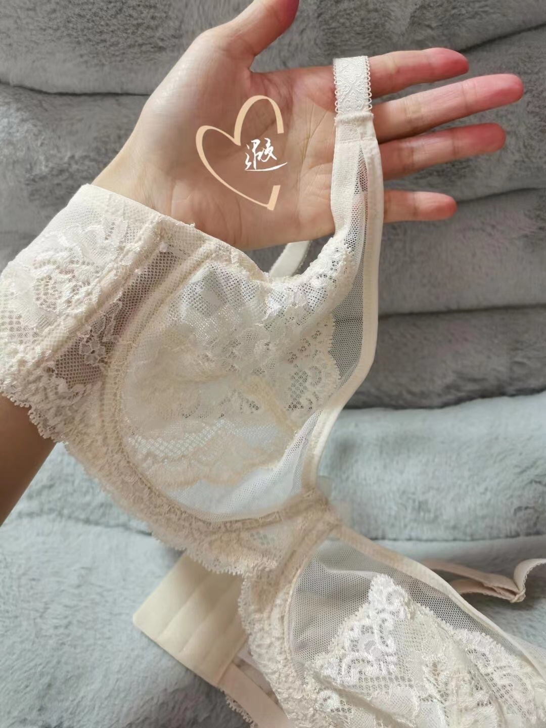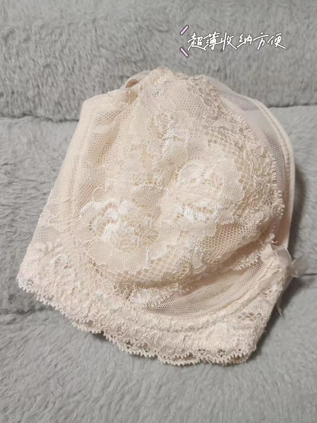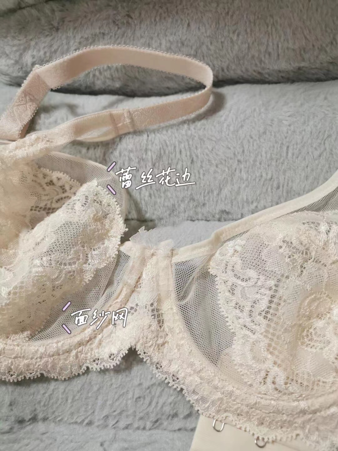 外形设计是蕾丝花边➕网纱,加了钢圈设计,穿起来对胸部有很好的承托作用,大胸mm不用担心下垂问题啦,全杯罩会有大胸显小的效果~像我这种小胸穿着会更凸显小性感哈哈哈,有内味儿了~