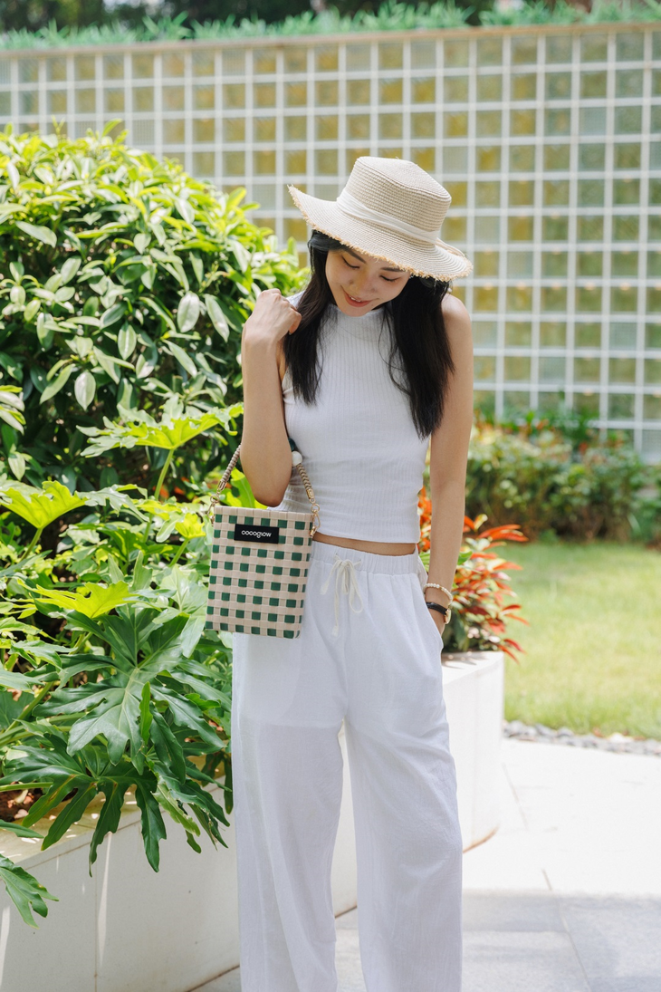 跟上面正方形的菜篮子不同,斜挎包更修长,接近手机包的形状,搭配上更有造型感~