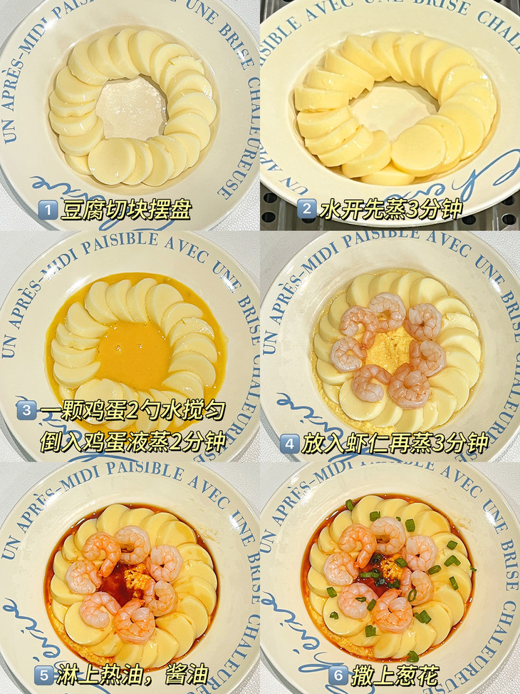 3、鸡蛋加2勺水搅拌均匀,淋到豆腐上面,再蒸2分钟