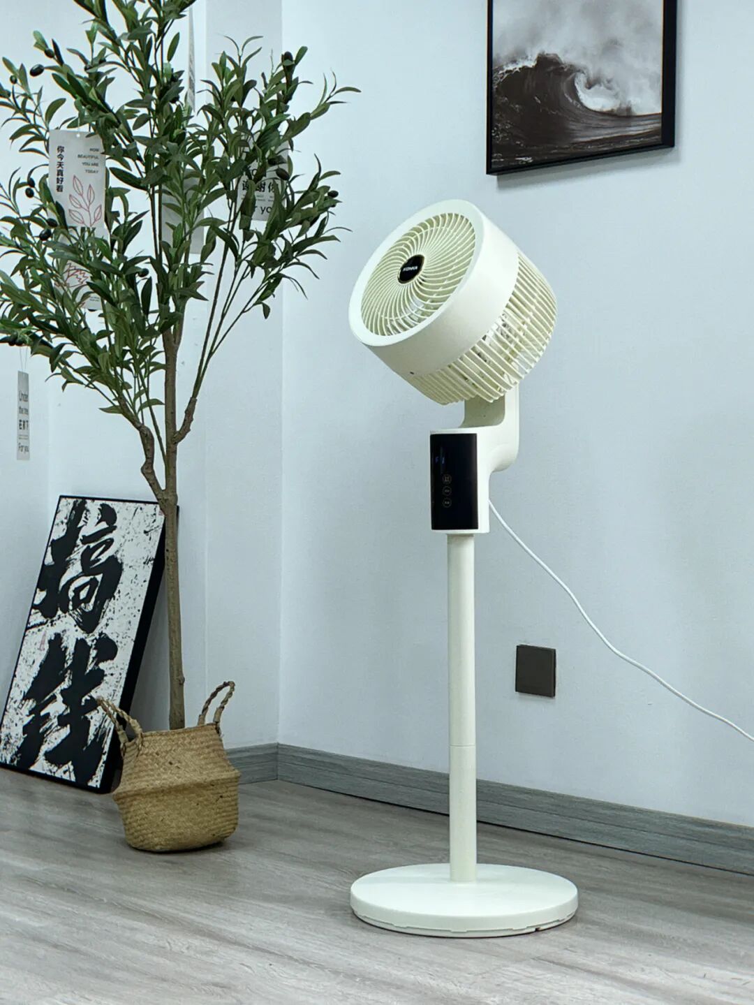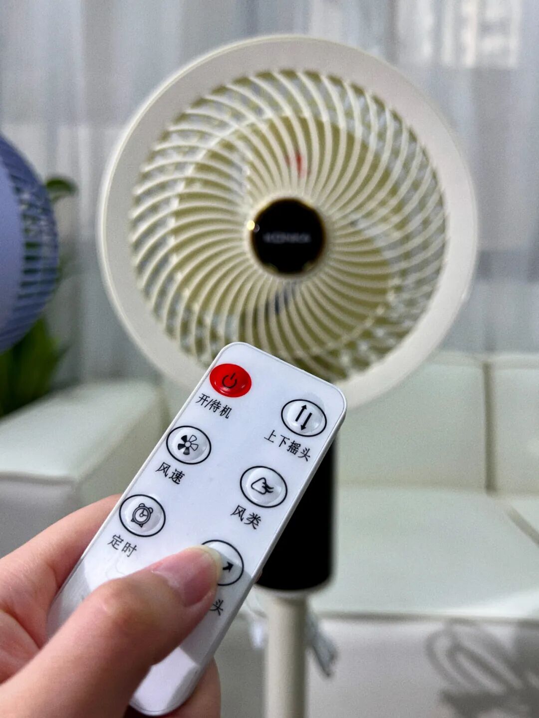 仔细看,风扇的束风罩后还有一个隐藏式的提手,方便在家里不同房间搬动。
