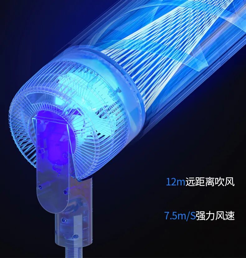 传统的风扇聚风能力差,都是直直往前吹,风距只有2-3米;