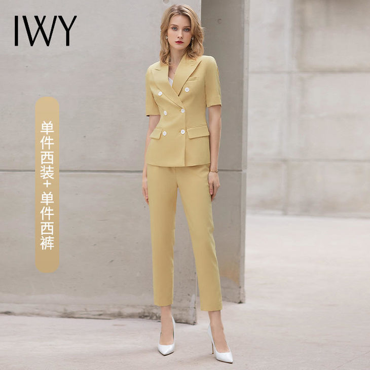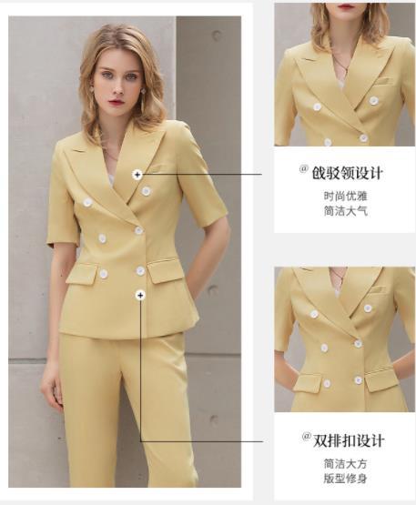 CP12202 上午 气质双排扣短袖西装套装女新款夏季薄款高端美业工服