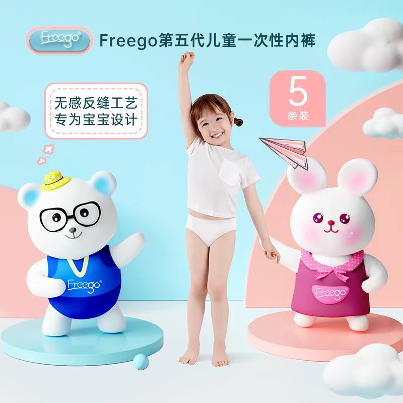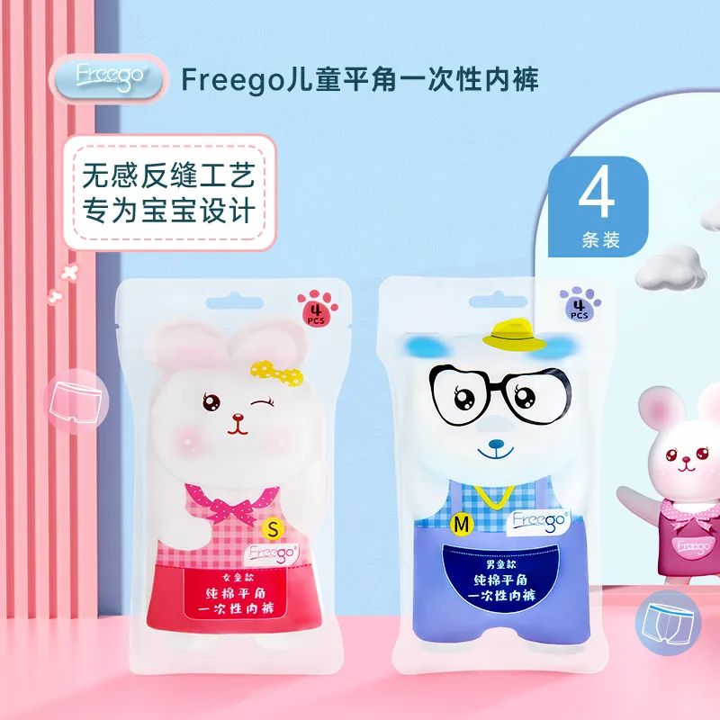 以上建议是Freego研究所根据三角及平角裤不同特点给出的供参考的指导意见。宝妈们在款式选择上还是根据自家孩子的情况及偏好做选择哦!针对不同年龄层的儿童体型,我们开发了不同款的一次性内裤,从3-15岁的儿童均可按身高体重的参数进行选择!