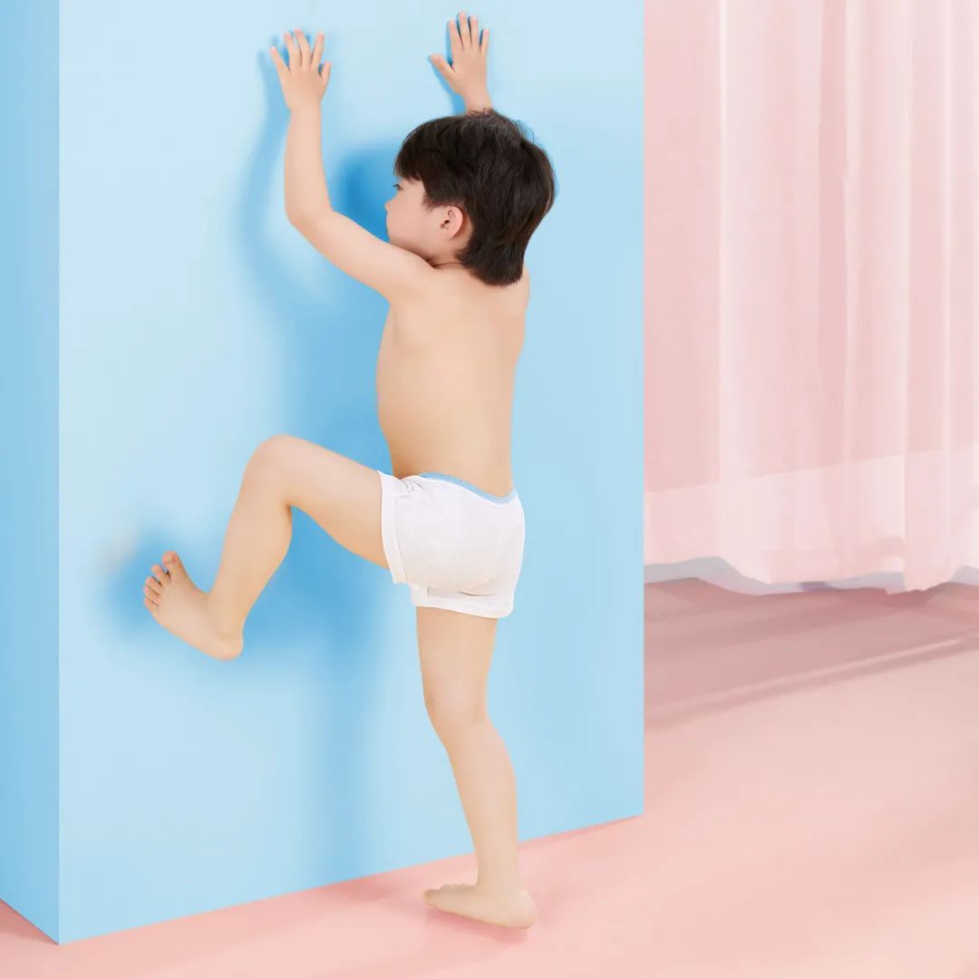 购买过婴幼儿衣服的宝妈都会关注到一个细节,就是标签均外缝,避免商标及洗水唛对宝宝幼嫩肌肤的摩擦。当我们在开发幼童一次性内裤时,也特别针对减少肌肤摩擦的这一问题,做了工艺上的调整。采用了反缝工艺,缝线在外保证了接触孩子皮肤的那一面均平整顺滑。就是成长期孩童的肆意嬉闹蹦跳也不用担心会磨硌肌肤。每个细节工艺,都是一份关爱。