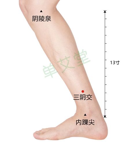 三阴交是肝、脾、肾三条阴经的交会穴,且这三条阴经又在关元处与任脉相交,肝主疏泄而藏血,脾主运化而统血,肾主水而藏精,任脉主胞宫,故三阴交是调理男女生殖问题的主穴,在内踝尖上3寸。