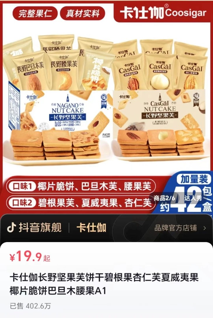 1、某音400万单大爆款,长野坚果芙新口味上线!!!