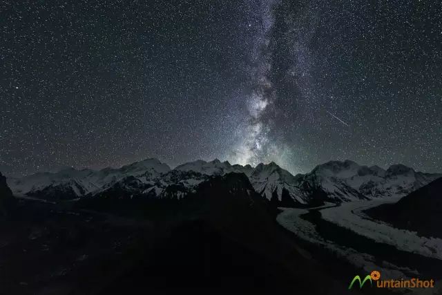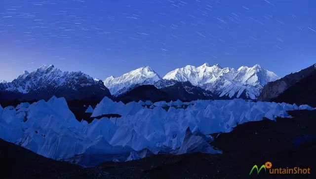 但若想追求极致的震撼效果,建议你登上乌杜鲁克观景平台,上面的效果是世界级的,相比于EBC三大观景平台有过之而无不及。入夜时分,一条银河,两条冰川,流星划过三座八千米的雪山之巅,你能想象的到的美景,近在眼前。