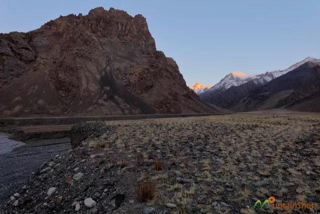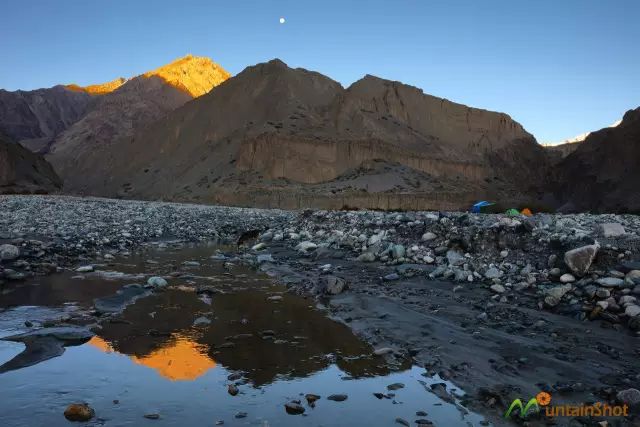 3.12 K2韩国营地:从北坡欣赏K2的最佳营地,由3#红柳滩出发当天便能到达,建议在此露营一晚以便有充足的时间观赏日出日落时分K2的壮美。但由于驼队只能到达音红滩,因此想要在此露营的话后需要自己负重徒步一段距离。就风景而言,我觉得日落时分的K2比日出时分更加壮美。