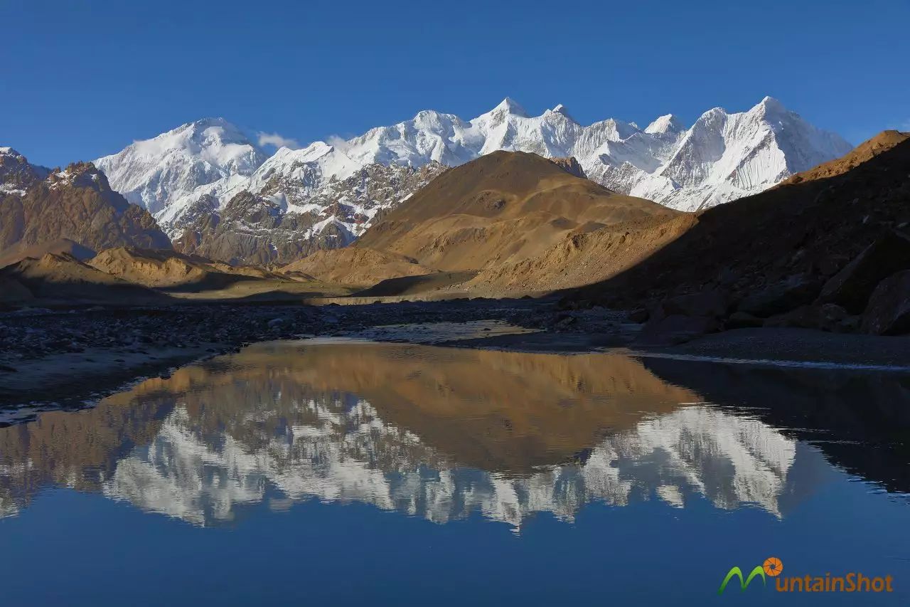 Udok冰川尾端有一个很大的冰湖,可以拍摄迦舒布鲁姆倒影,距离乌杜鲁克营地并不远,但这里无法看到布洛阿特峰,时间允许的话不妨到此一游。