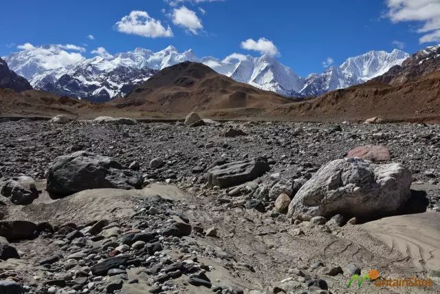 3.11 音红滩:又被称为中国大本营。其实这个地方是看不到K2的,但这个营地风景还是挺不错的,能看到几座不知名的雪山。