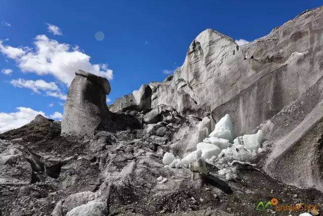 从意大利营地再往前行一公里左右,便会被茫茫冰川彻底阻断原本就很不明显的路痕,想要去前进营地或者深入冰塔林已经超越了普通徒步爱好者的能力,我到此地也只能放弃前行。