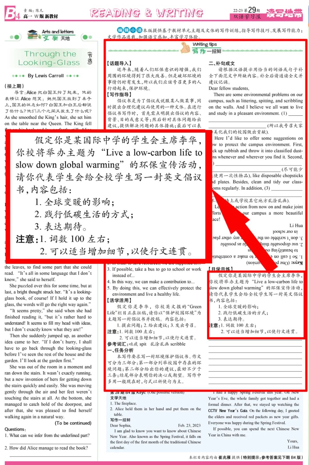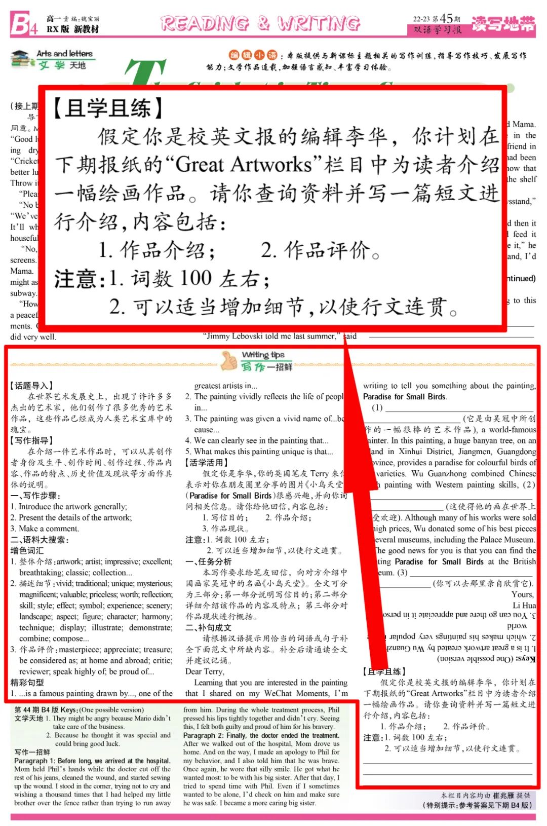《双语学习报》2022-2023学年高一W新教材天津专版第29期B4版写作一招鲜和2024年天津卷书面表达完全一致