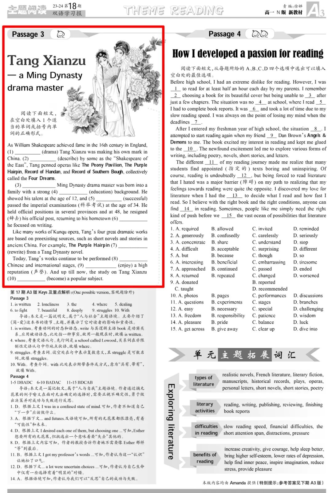 2024年新课标II卷语法填空 主题为中国明代戏曲家汤显祖Tang Xianzu和国外文学家莎士比亚Shakespeare的对比展开。