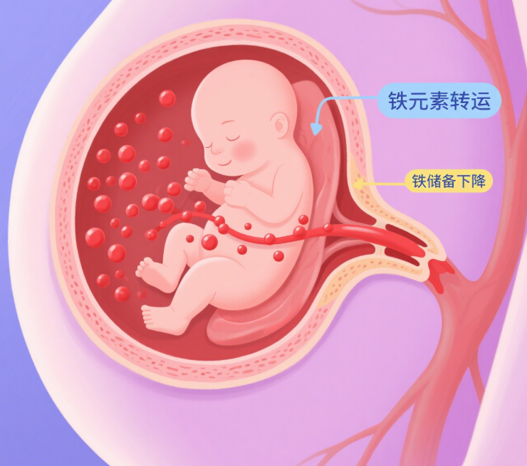 2.宝宝需求量大:胎儿生长发育、制造自身的血液和储存铁质,都需要从母体汲取大量的铁元素。