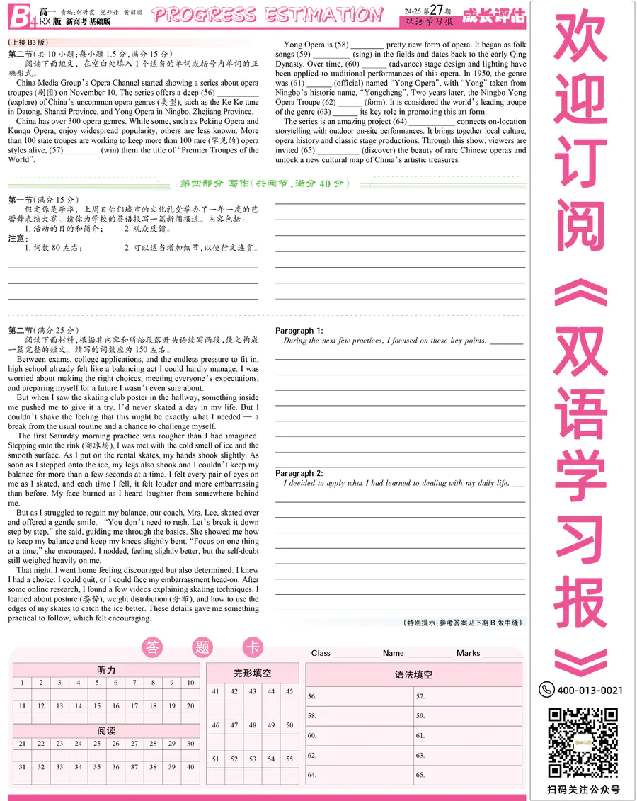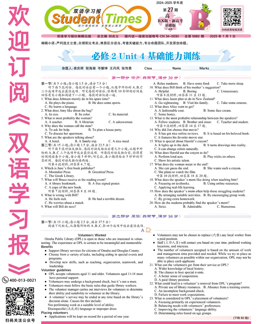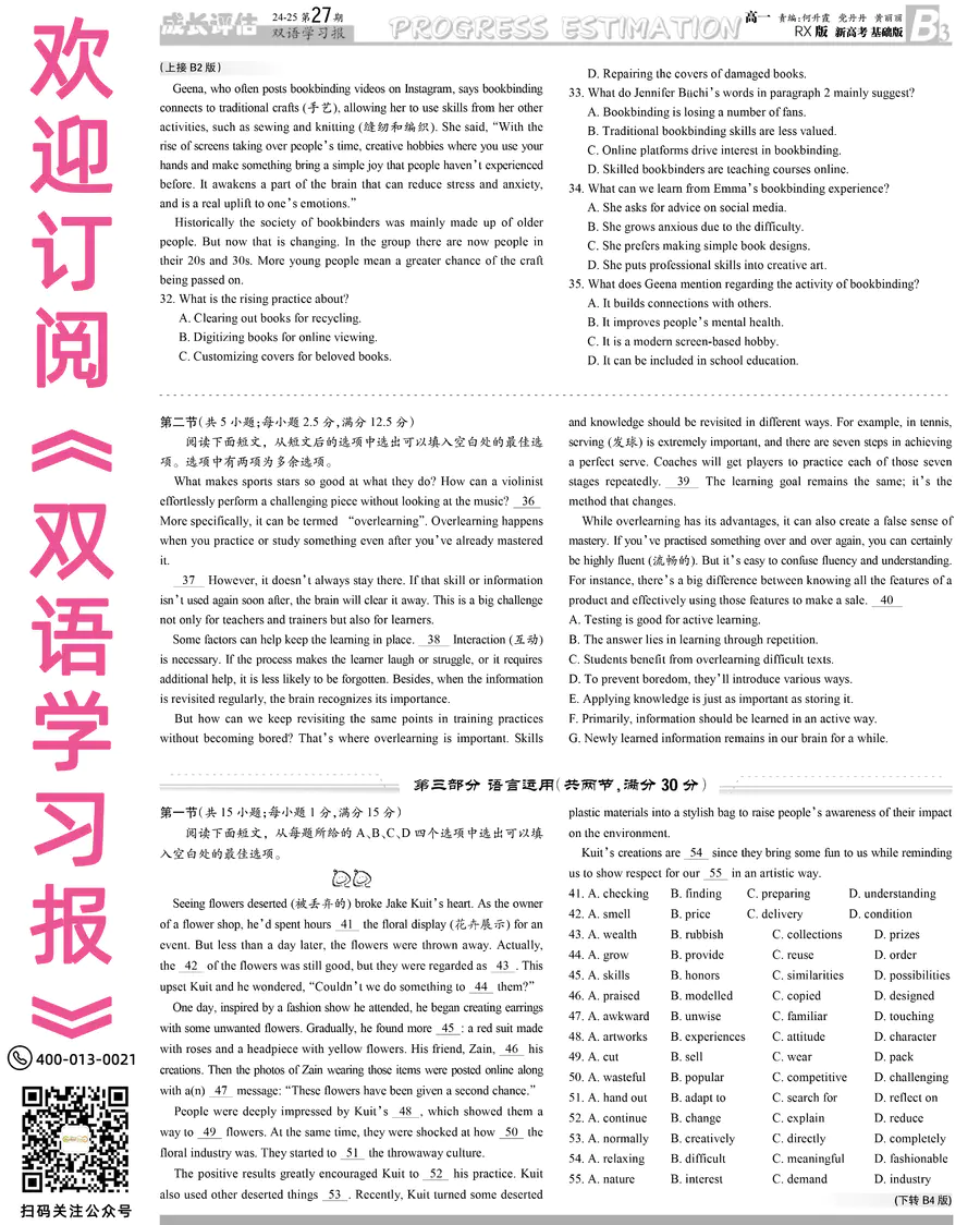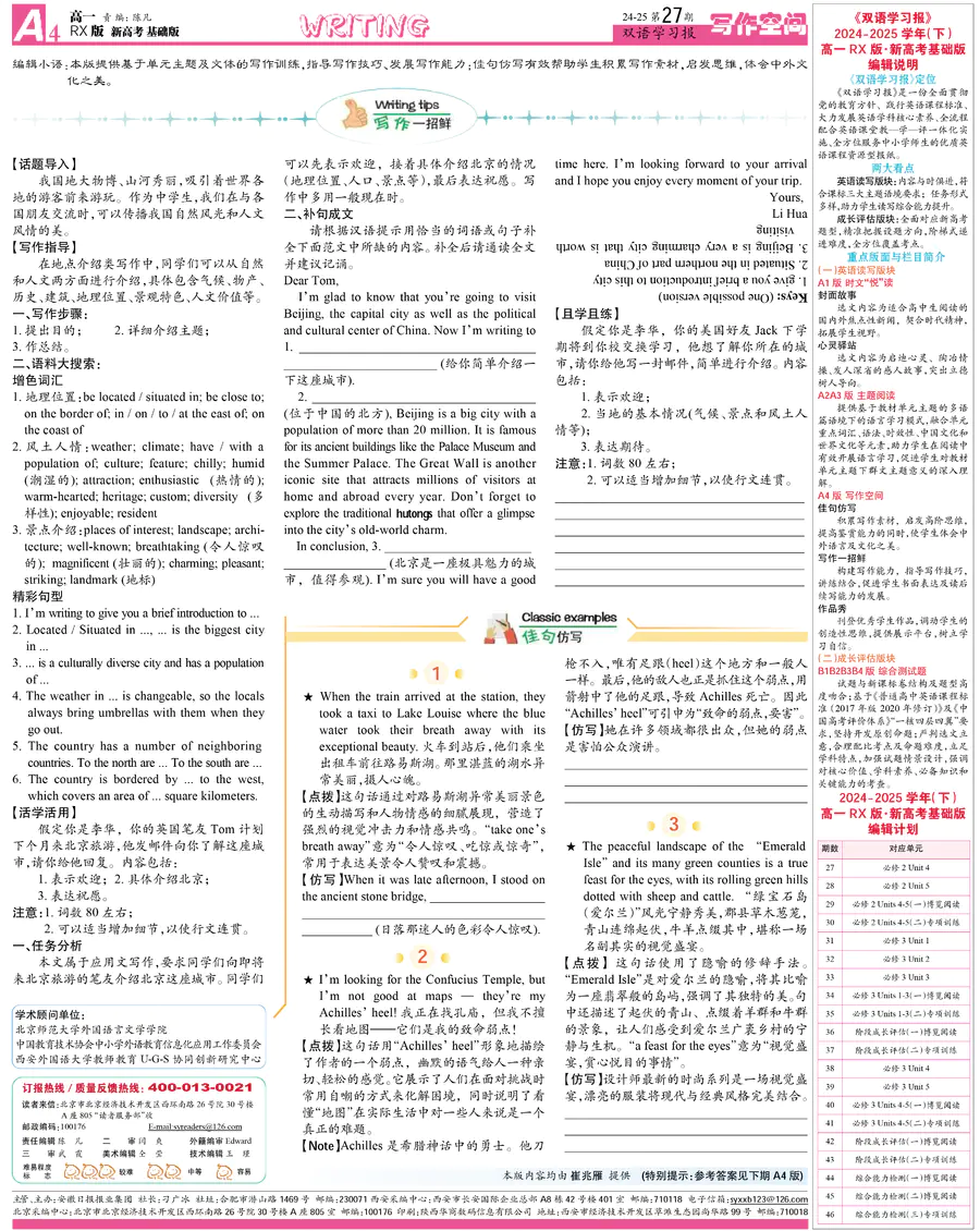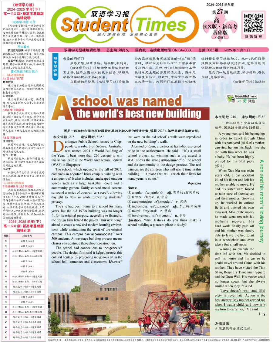 高中英语样报 高一 RX版 新高考基础版 第27期