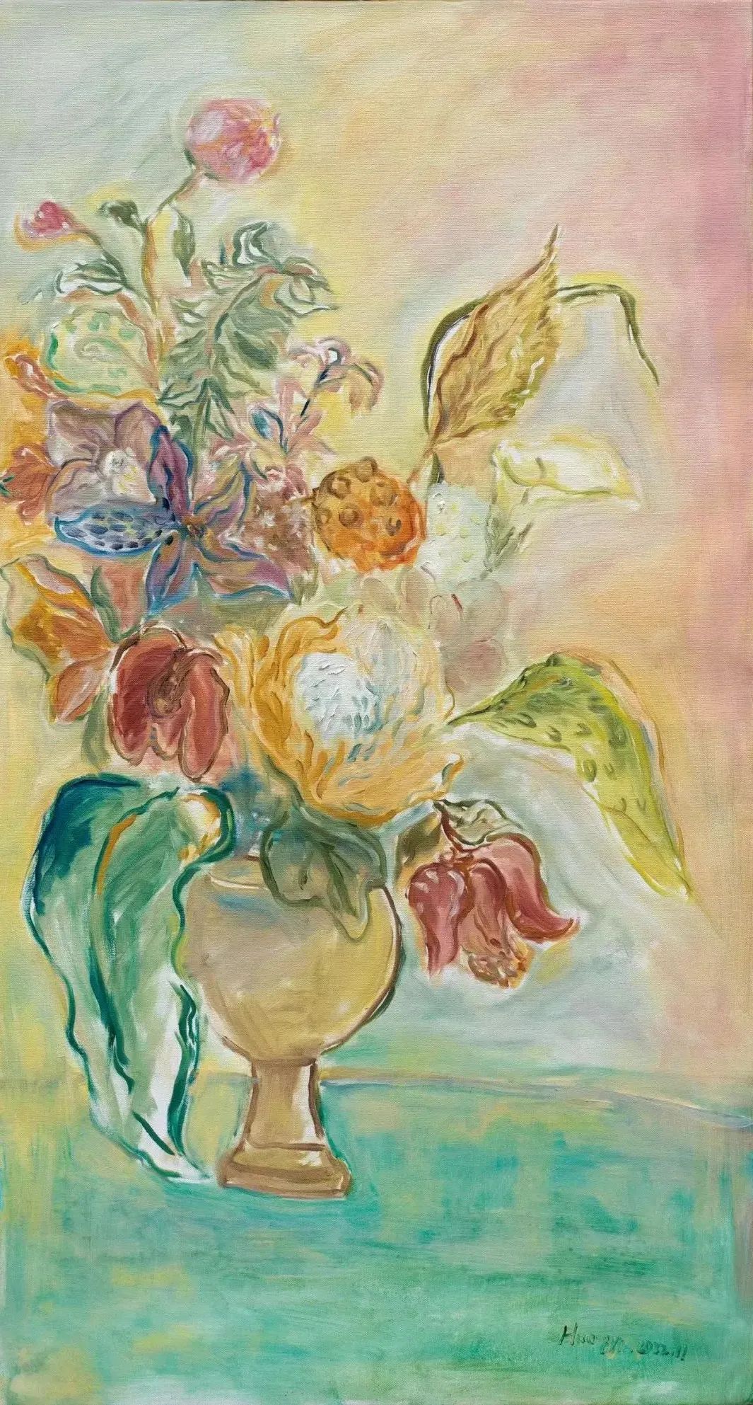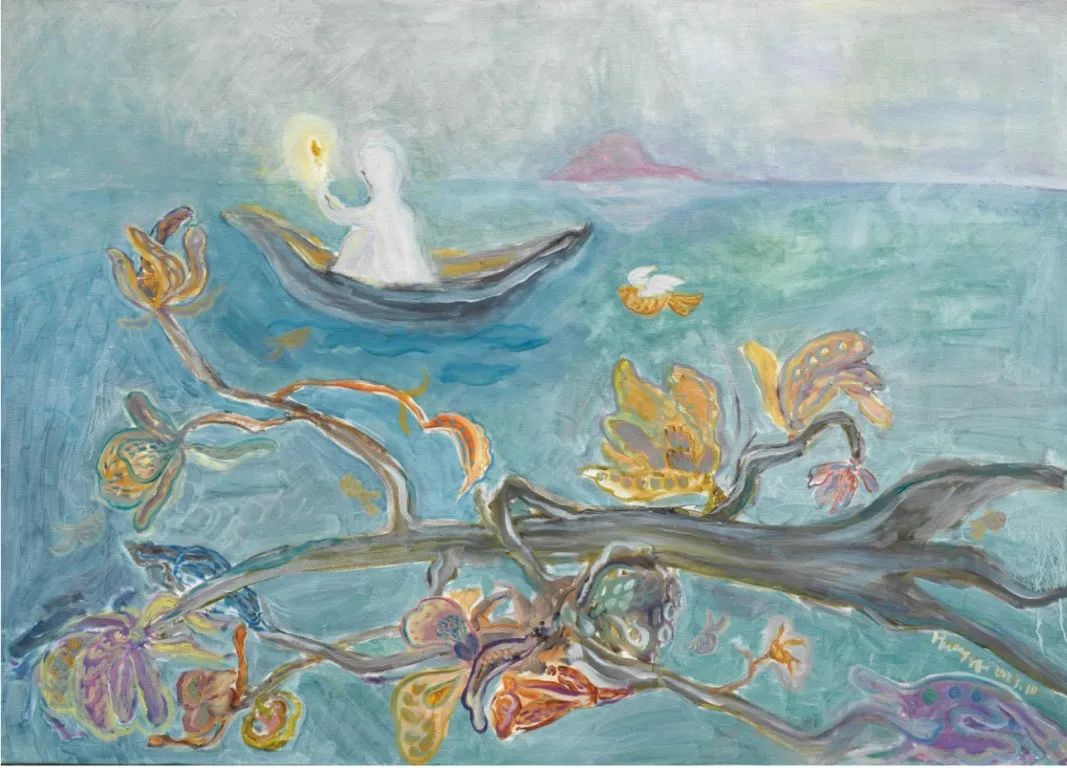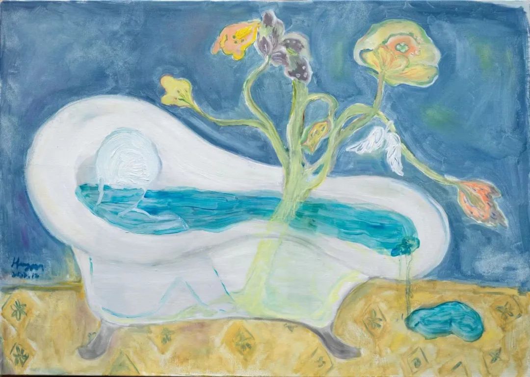 看黄老师的画,像听花开的声音,静谧中沁润着淡淡的浪漫,轻书浅语,她的画里有一个似我非我的影子,让秘而不宣的心事全部隐匿在花的香息里,器物的淡然里,风景的自在里。