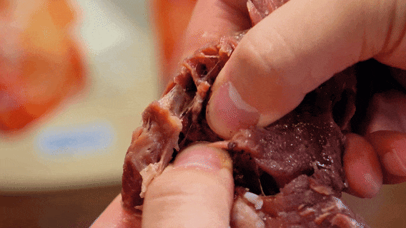 完整肌肉纹理清晰可见,肉丝分明,筋膜透亮——这是“原肉整切”的盖章认证!