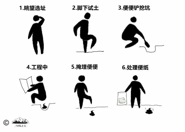 小便,可在远离他人视听、避开水源处自行解决;大便可在有遮挡物,且距离营地、水源地60米以上位置解决,务必挖坑填埋。