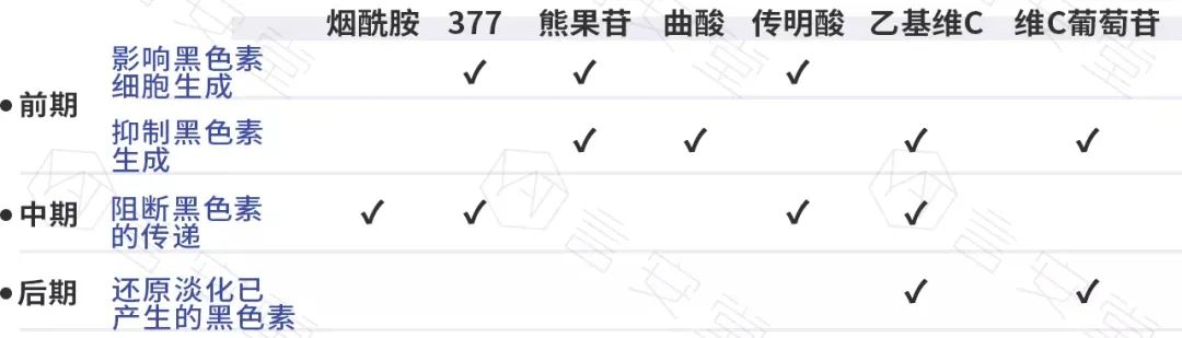 - 后期:提高皮肤代谢黑色素的速度。