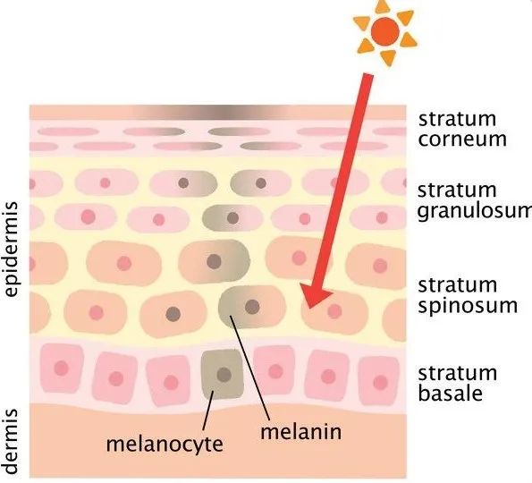 在这之前还是要先说说黑色素的事儿。正常情况下黑色素细胞有条不紊地工作,皮肤有节奏地代谢掉黑色素,生产消耗相抵,这些黑色素也不会积压,便不会形成色素沉积。