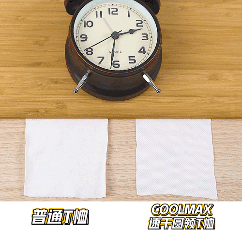 有一说一,CoolMax的速干效果甚至可以可达到纯棉面料的5倍!