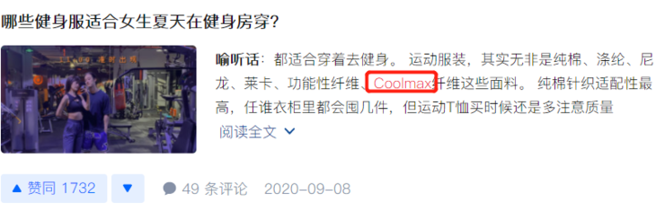 某乎问答区:不管你是户外爬山、健身房、还是单纯夏天爱出汗,你都可以选择相信CoolMax!
