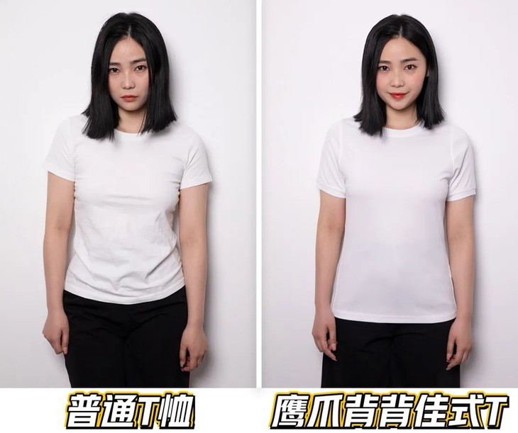 摄影小哥的溜肩问题,穿上“背背佳T”后视觉上也得到了“拯救”。
