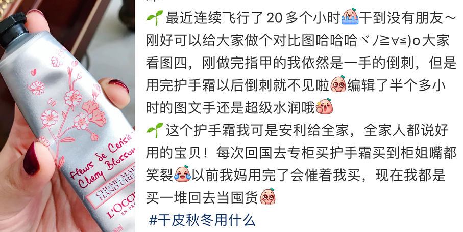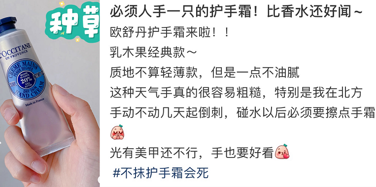 而欧舒丹的护手霜,它被誉为护手霜界的“爱马仕”、“全世界最好用的护手霜”,全球每4秒,就有一支护手霜售出。