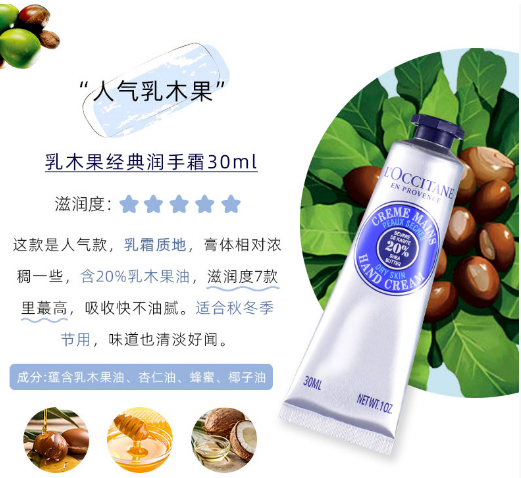 欧舒丹是法国殿堂级别的护肤品牌!它家的护手霜更是家喻户晓,被誉为护手霜中的“爱马仕”。