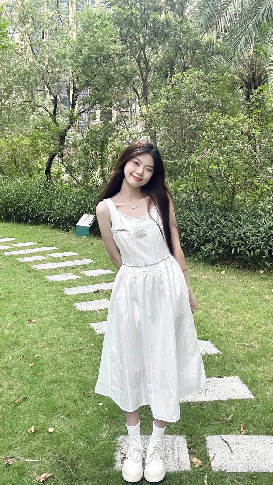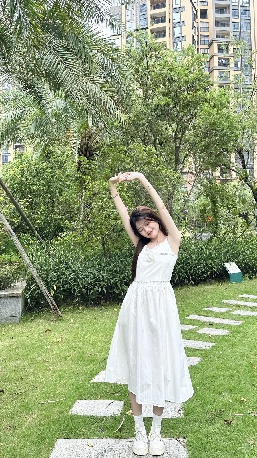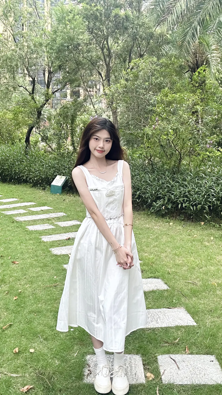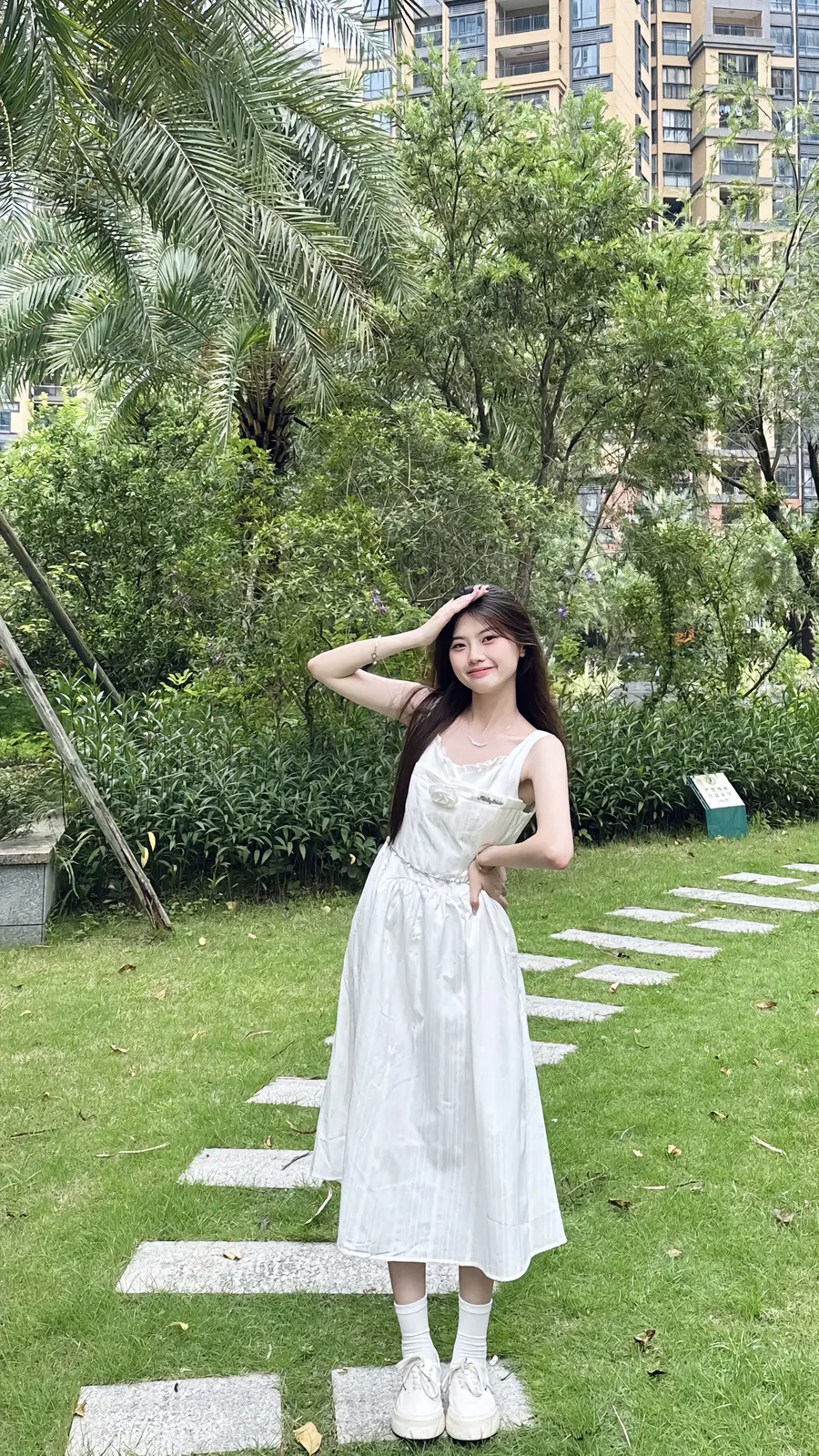白色温柔小裙子搭配+范琦紫藤花项链 🍀是青春的感觉啊~
