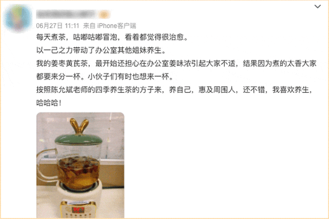 冬至人体阳虚,喝肉桂奶茶;立夏头痛,吃天麻黄精炖鸡;大暑,食黄芪茯苓粥;小寒,吃糯米红豆饭……