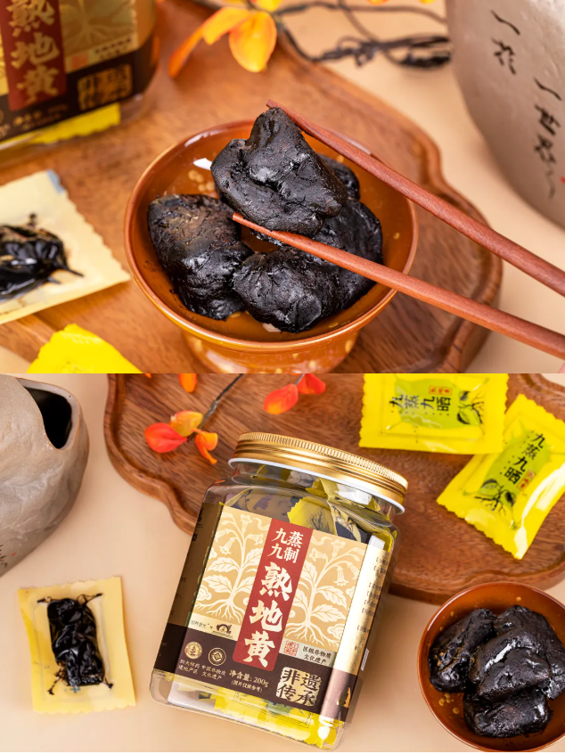 这款李时珍出品的九蒸九制熟地黄,开袋即食,茶余饭后休息时,随时随地来一块~