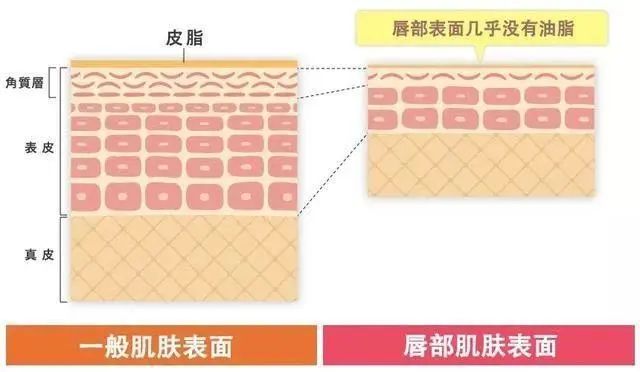 唇部角质层很薄,没有皮脂腺可以分泌油脂自我滋润,也没有皮脂膜帮助锁住水分。因此唇部皮肤水分流失速度是面部皮肤的三倍!