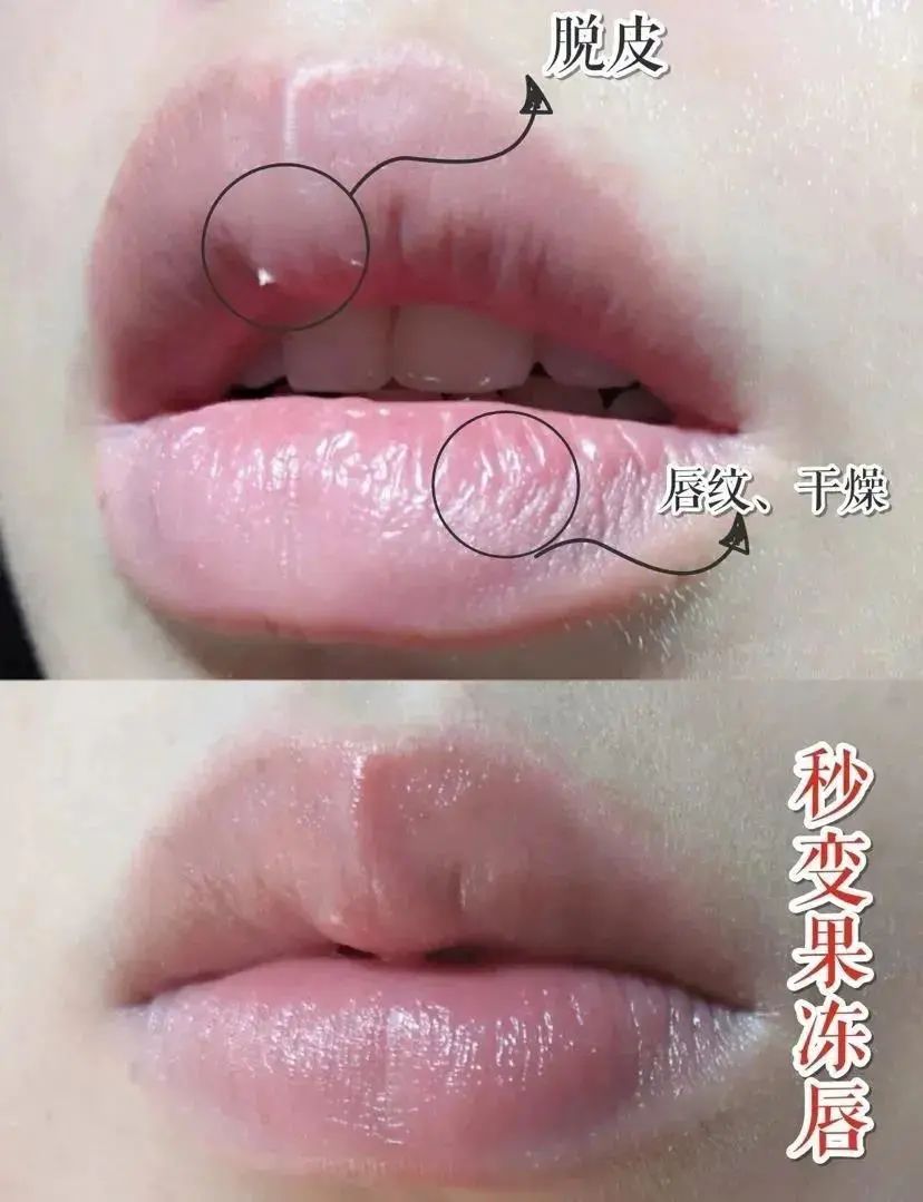 第二天起来,双唇娇嫩不干燥,唇纹、干皮都有所改善,唇部显得亮丽饱满!