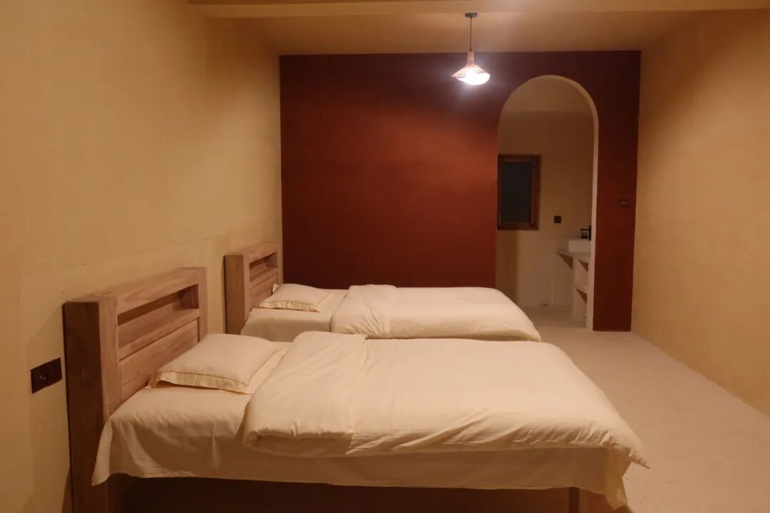 抱朴苑有房屋8栋,其中一栋新建的两层楼,包含8间客房——4间大床房,4间双床房。另有三栋老土坯房,保留着原有的土夯墙和木质楼板,岁月的痕迹让人心生安定。
