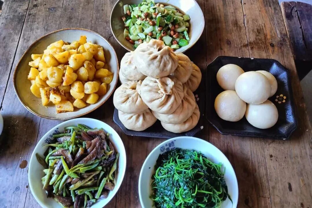 抱朴苑的饮食为纯净素食,以谦益自种的自然农法五谷杂粮为主食,搭配基地种植的新鲜蔬菜。