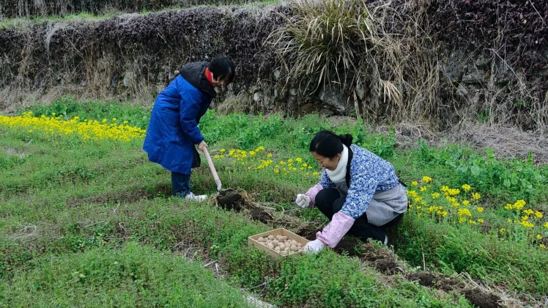 院子里的土,撒点种子就很容易长出苗来。春天有漫山遍野的油菜花(胥岭是华东地区十大油菜花摄影基地),秋天有随手可捡的山核桃和板栗,还有知青种下的山茶树,每年十一月满山白色的茶花开,十二月采茶籽榨油。