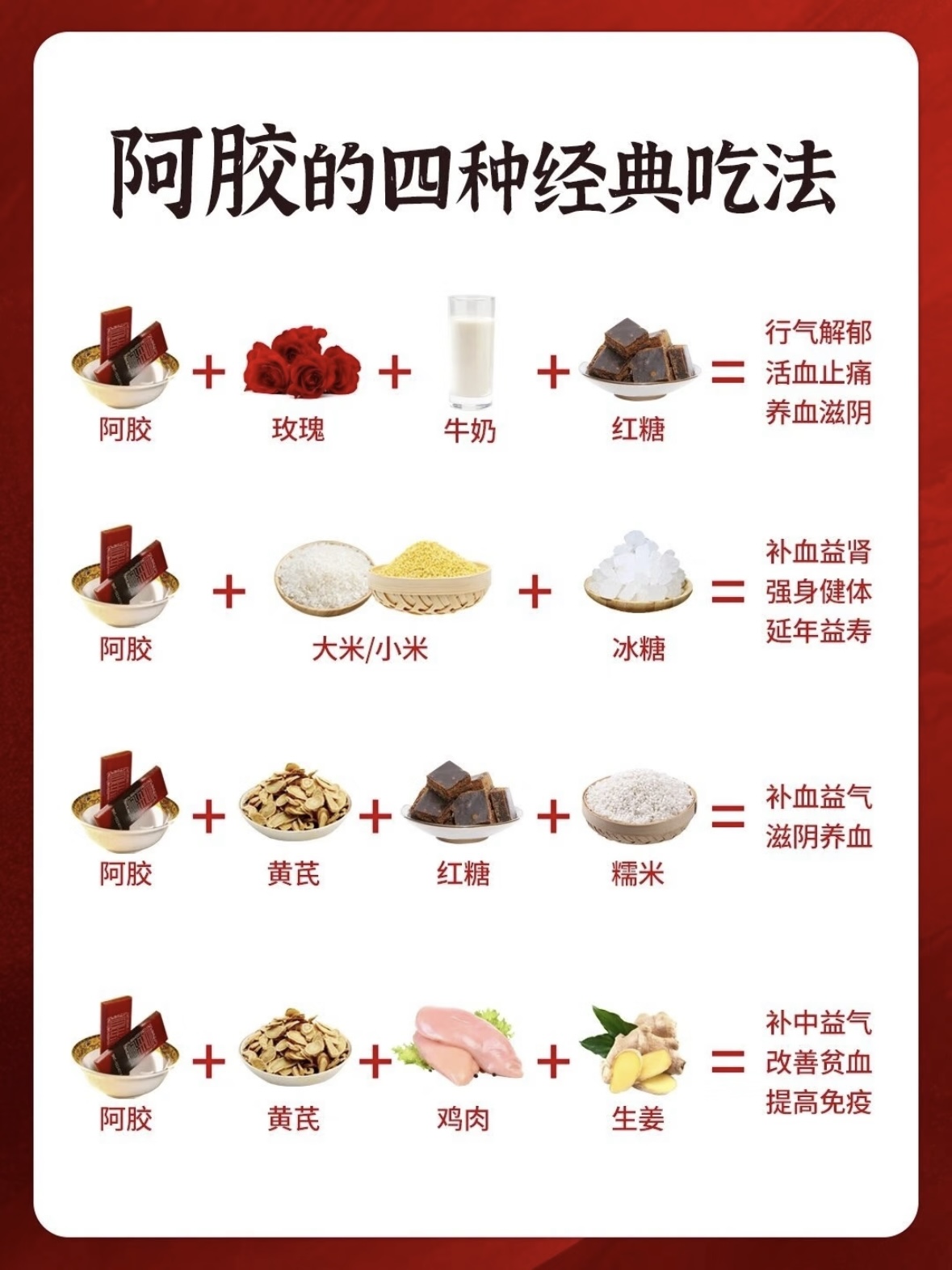 材料:阿胶10克(打粉),糯米100克,红枣5-8枚(去核),红糖或桂圆肉适量