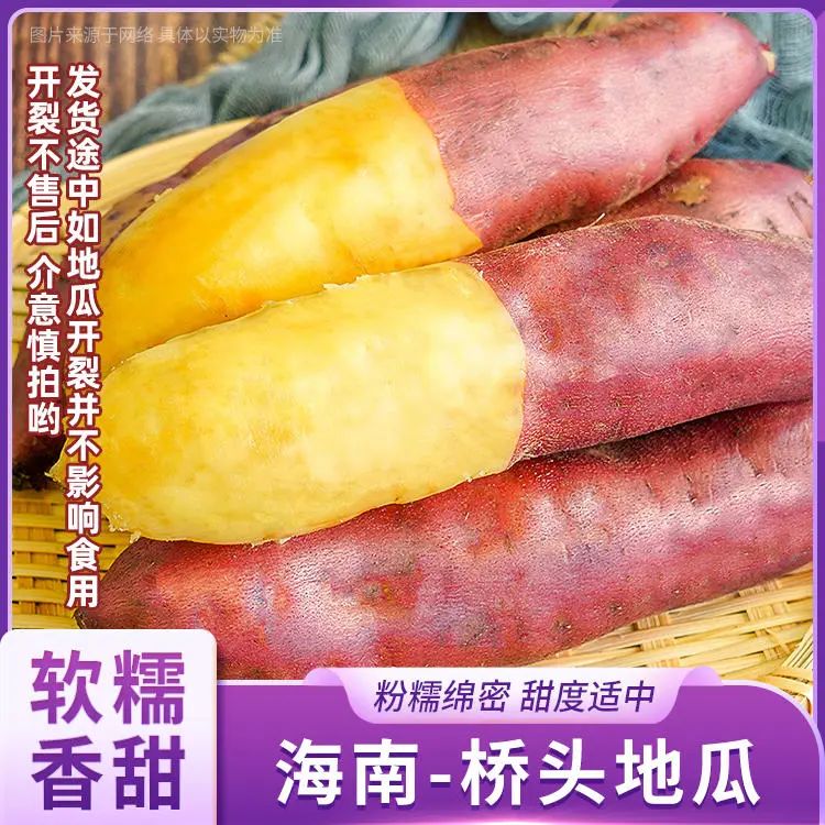 海南的温度高,日照长,使得种出的桥头地瓜皮薄如纸,香甜入味,瓜肉没有一点粗硬纤维感,更没有一丝丝的经络。
