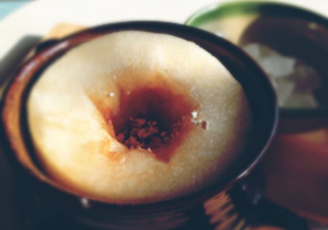 3、挖去梨芯,千万不要挖透雪梨底部;
