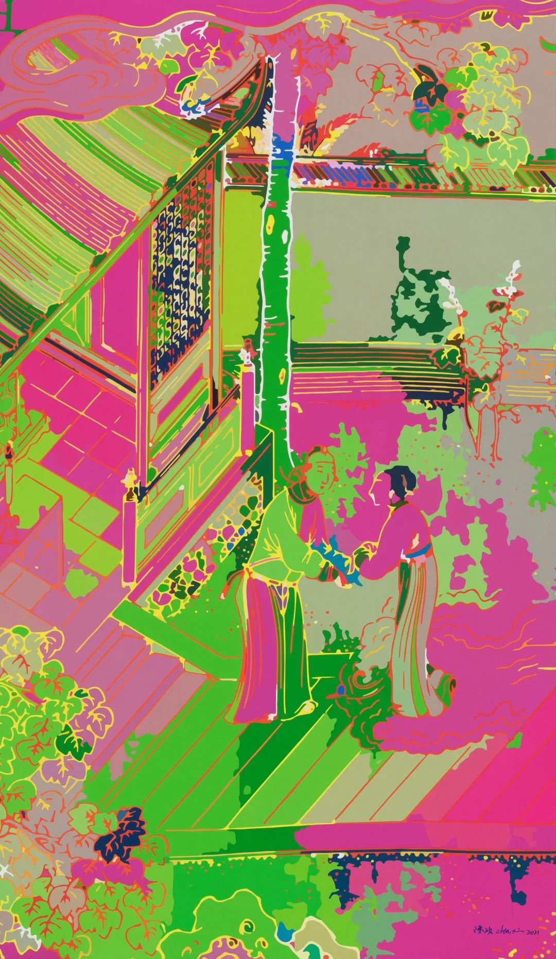 陈欣以抽象表现主义的创作手法跟鲜艳明快极具潮流感的色彩,与艺术史中的山水画家对话/对画。中国的文化博大精深,陈欣在古今中对话,融通了东西方绘画的表达,认识陈欣数年。看到陈老师,始终在始终在探索着传统文化的创造性的转化,不断的探索,不断的创新,借古开今,去展示东方大美,是国潮典范。好的作品是我们现代的年轻人,即使不那么了解作品的原本出处,也会被作品之美吸引,于是探究学习,愿意更深入的去了解中国的东方大美,感叹身为中国人的自豪。