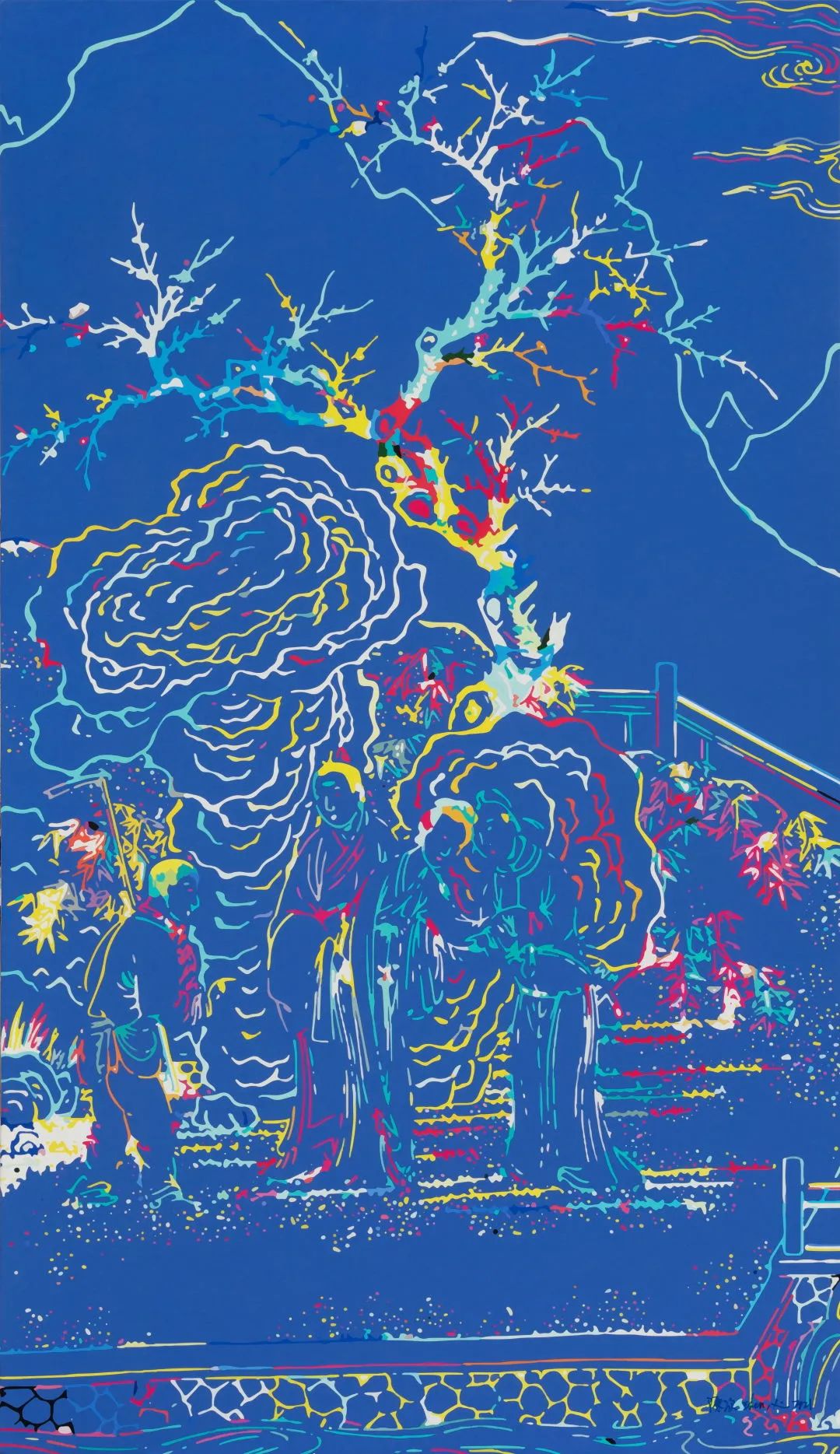 您如何想到将抽象和色彩碰撞运用到中国山水画里,而又使得作品不凌乱,可远观可细看?