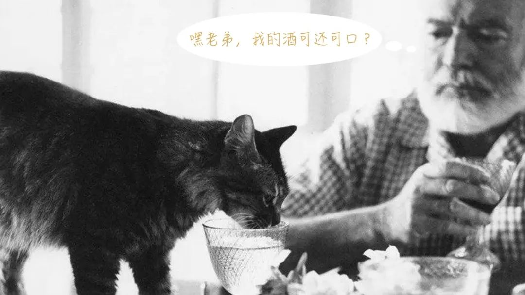 成功被它驯服且沦为“猫奴”的海明威,会在写作之余跟它碰杯。