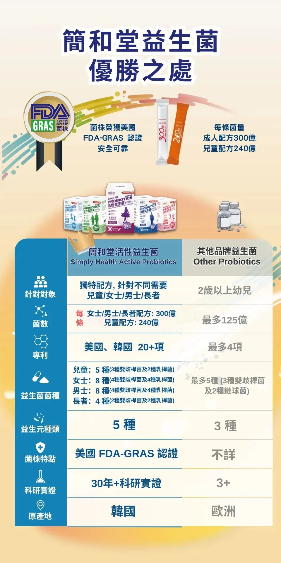 简和堂针对这些问题进行了优化,每条含有240亿~300亿菌数(一般只有125亿)。