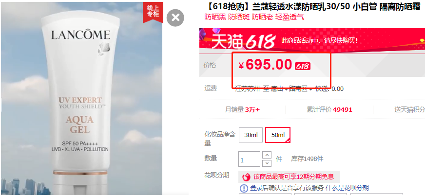 今天给女神们秒杀,江湖人称“防晒扛把子”的 Lancome 兰蔻轻透水漾防晒乳