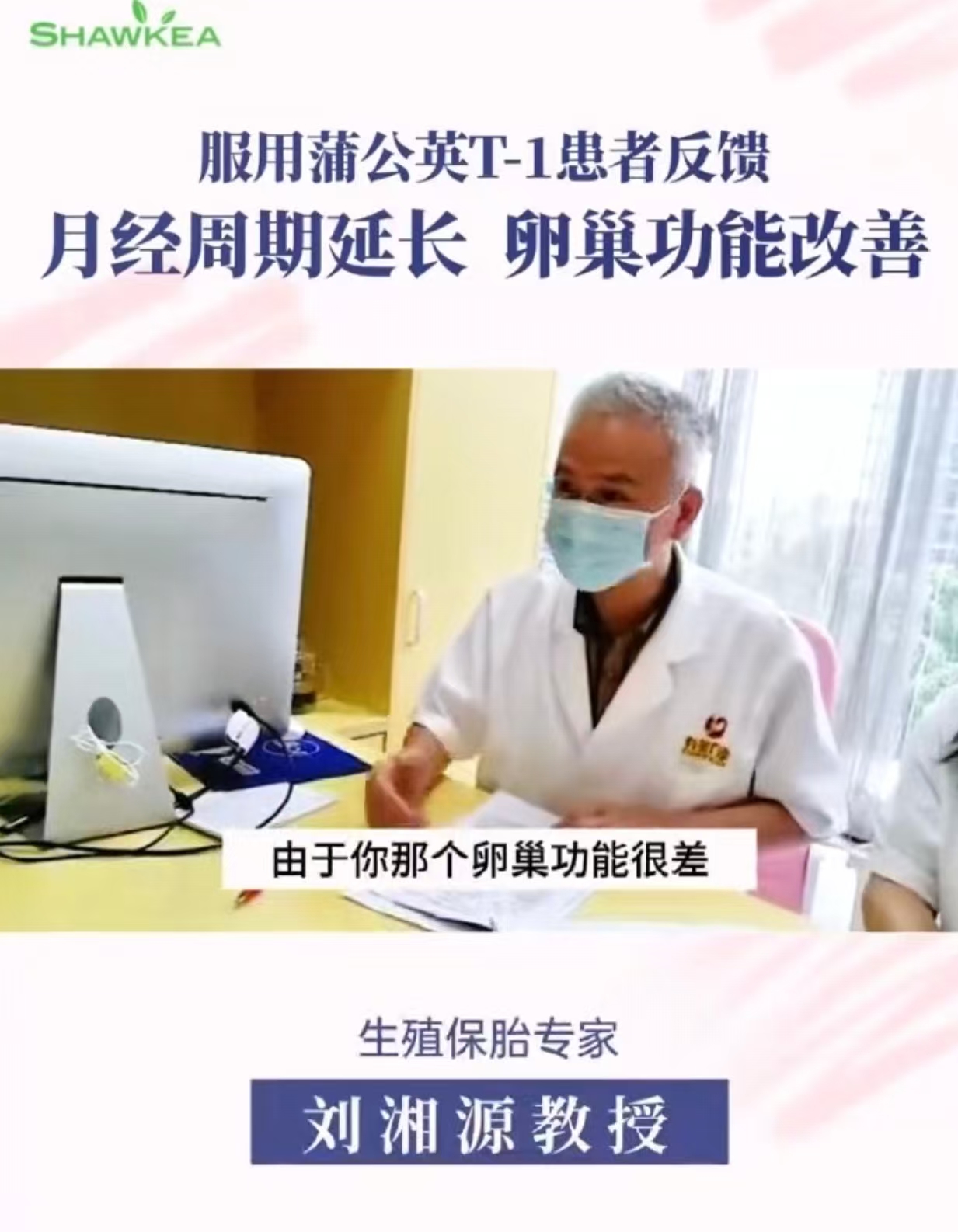 刘湘源教授(原北京大学第三医院风湿免疫科主任医师)的患者分享服用蒲公英T1后的感受:服用蒲公英T-1口服液月经周期延长,卵巢功能得到改善,AMH值上升